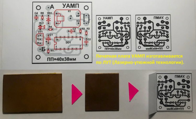 3). Применив микросхему в мини корпусе и малогабаритное реле, печатную плату УАМП можно значительно уменьшить.