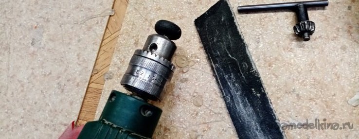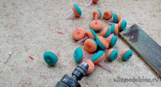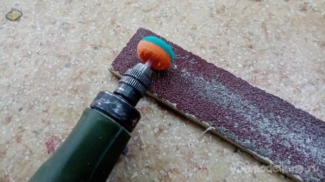 Обработка сводится к такому процессу. Закрепляю кончик трубочки в дрель или бормашину. Включаю на максимальные обороты и осторожно шлифую утюжком с наждачной бумагой.