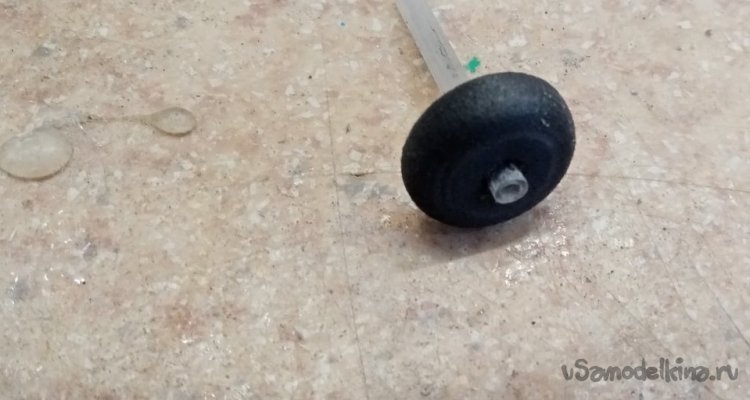 Устанавливаю на ось стойки шасси. Диаметр трубочек от ушных палочек подошел в самый раз. Хорошо крутятся и не болтаются. Вибрации нет. Нужно отнести в балансировку однако):