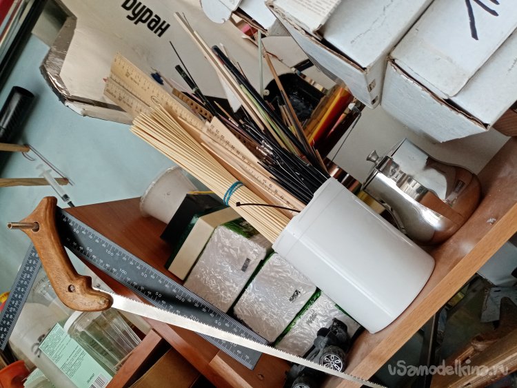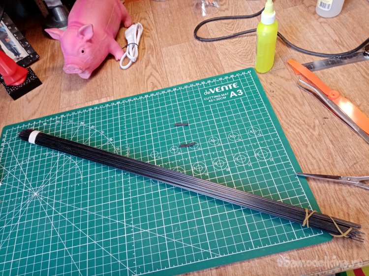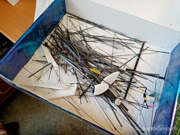 Хорошие прутики жалко резать. Применяю «вторичное сырье», открываю коробочку с карбоном снятым с разбитых моделей. Нужно найти прутик подходящего размера.