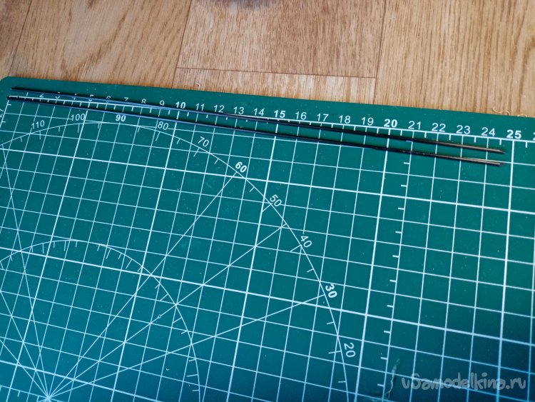 Разрезал прутик надвое, при этом использую разметку на своем новом коврике для резания. Очень удобная штука, рекомендую.