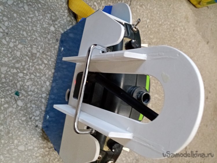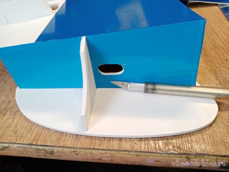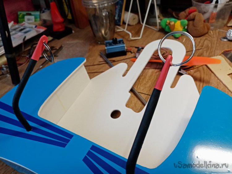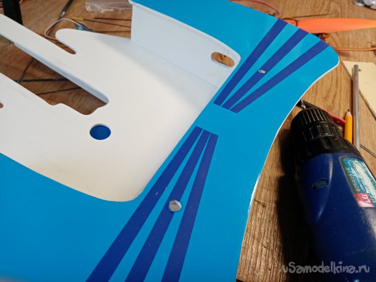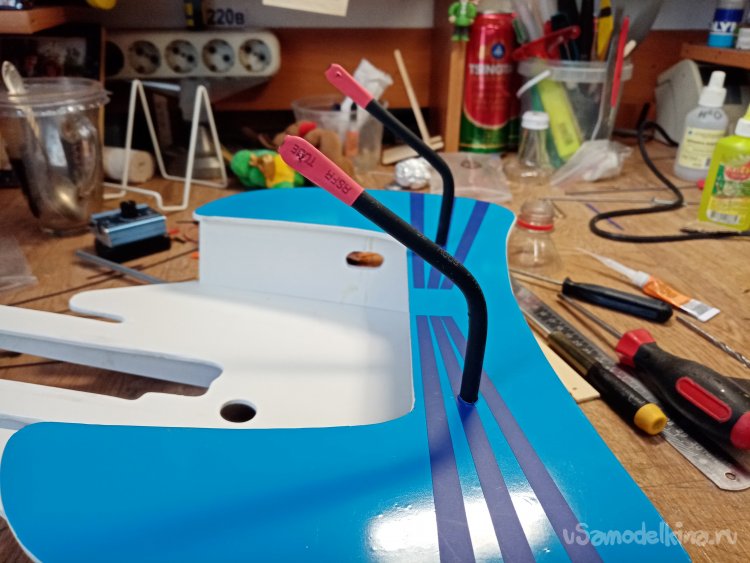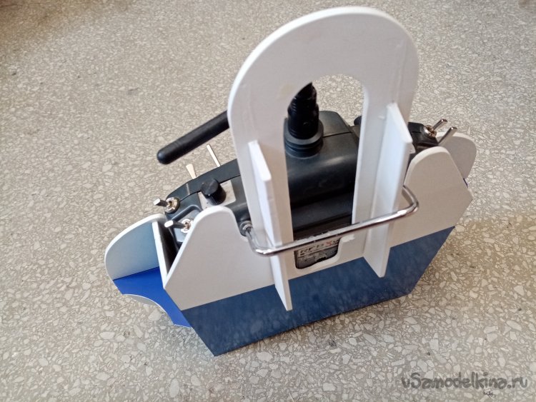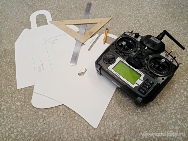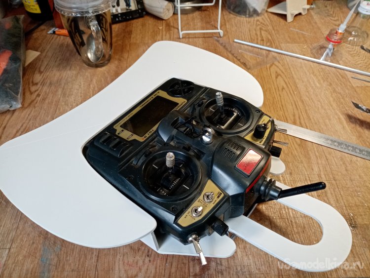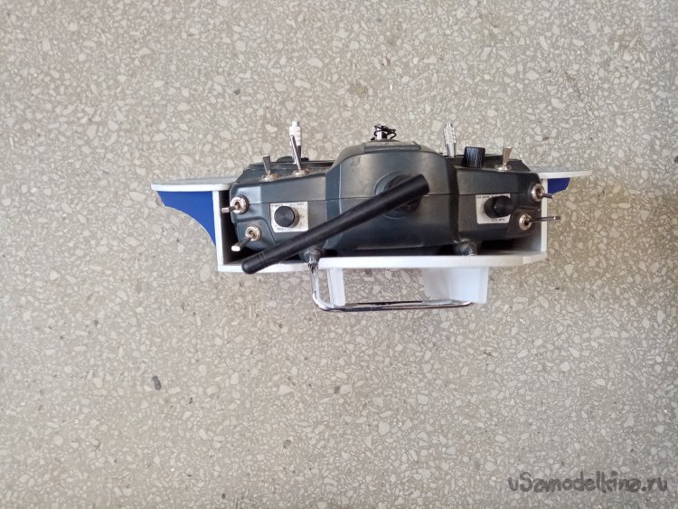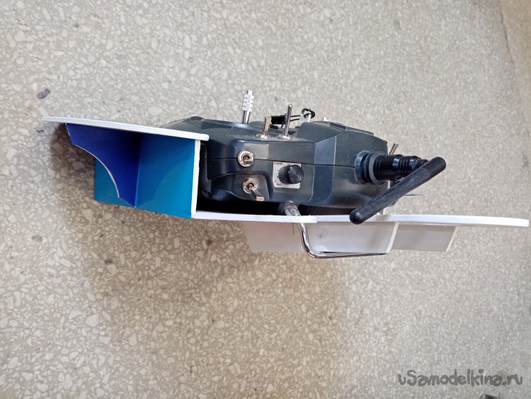 Прорезаю отверстие в боковой стенке для кабеля согласования с другим пультом. Это соединение называется «учитель-ученик». Если юный пилот сильно зарубится, могу при помощи второго пульта перехватить управление. Для этого достаточно просто переключить нужный тумблер, и вот уже лечу я.