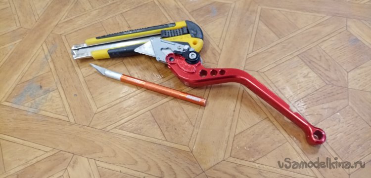 По утолявшейся технологии на изготовление конструкции пойдет белый рекламный пластик. В качестве инструмента использую несколько ножей разной конструкции и предназначения.