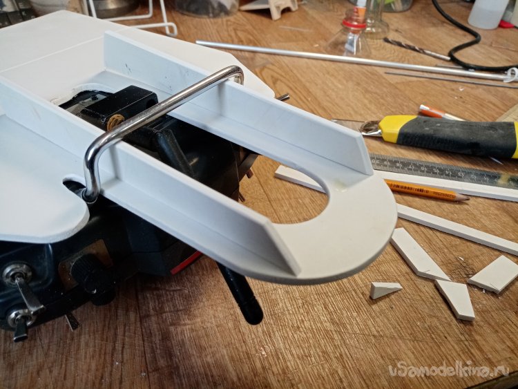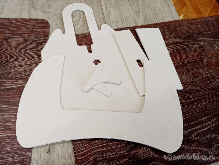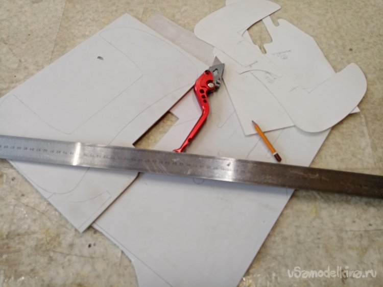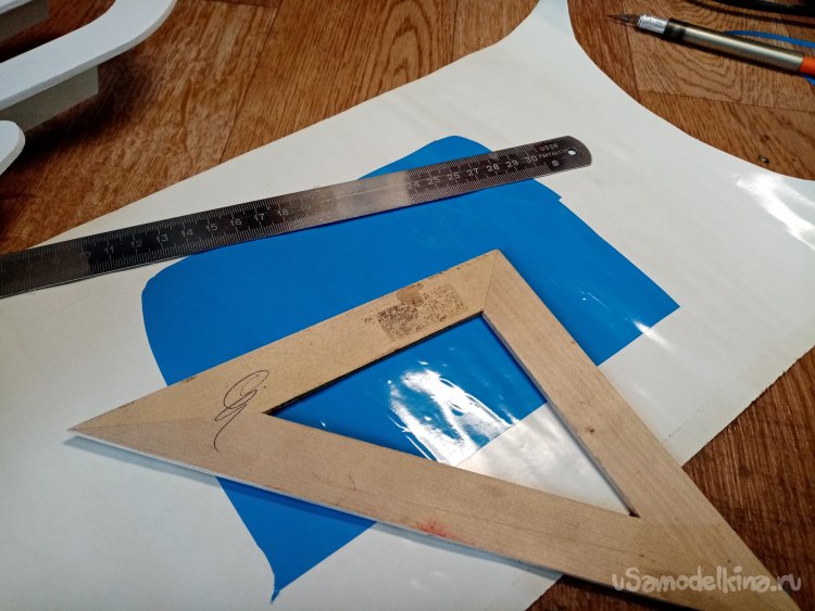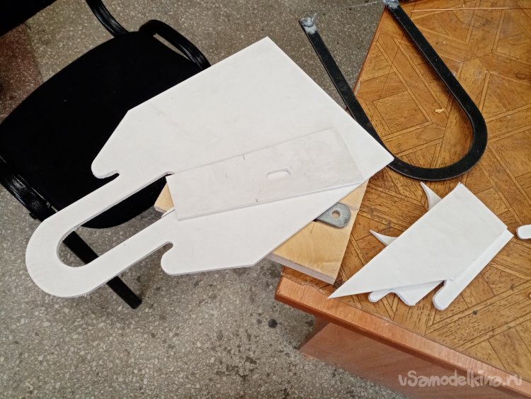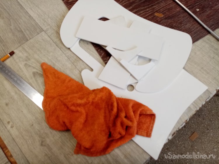 По шаблонам расчерчиваю детали на пластике и можно приступать к резательным работам. Основные прямые линии просто прорезаю ножом.