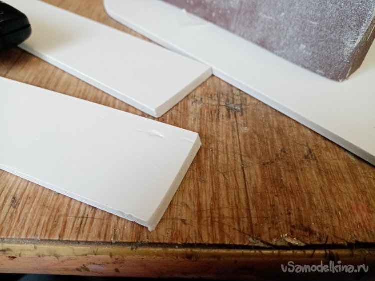 Практически все детали готовы. Нужно немного поправить боковые поверхности. Для этой операции применяю утюжки со шкуркой и просто отрезки её.