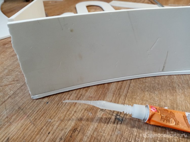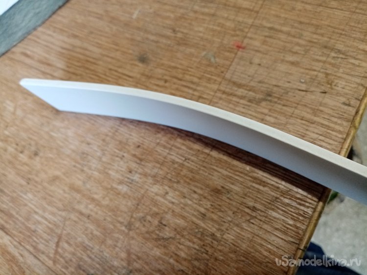 Деталь задней стенки немного изгибаю для удобства прилегания. Процедуру провожу просто руками, но осторожно. Можно легко сломать.