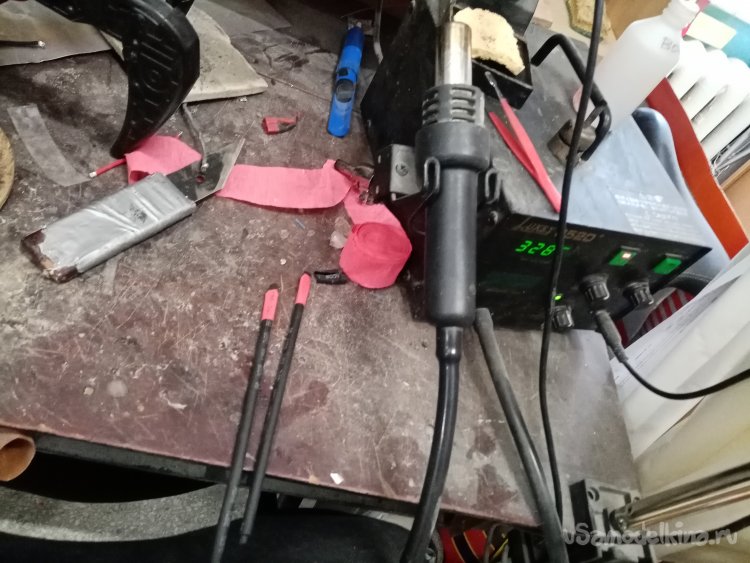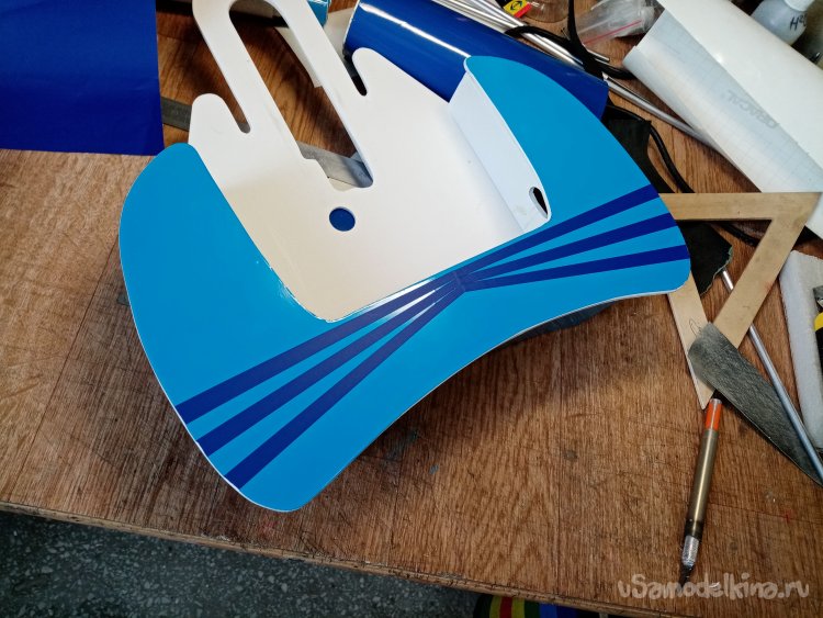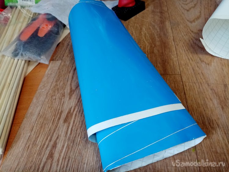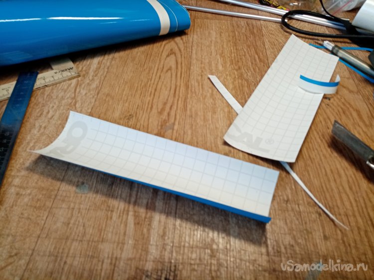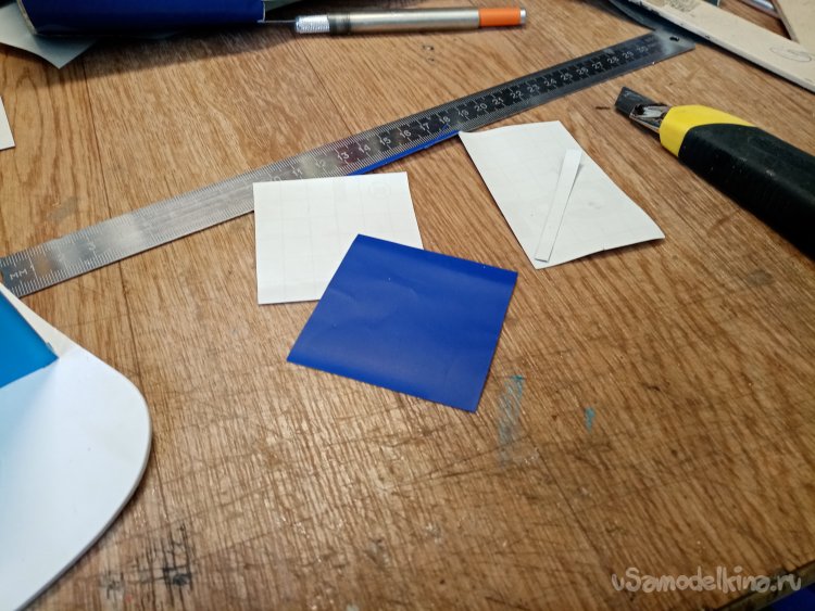 Остатки темно синего материала порезал на квадратики и оклеил усиления.