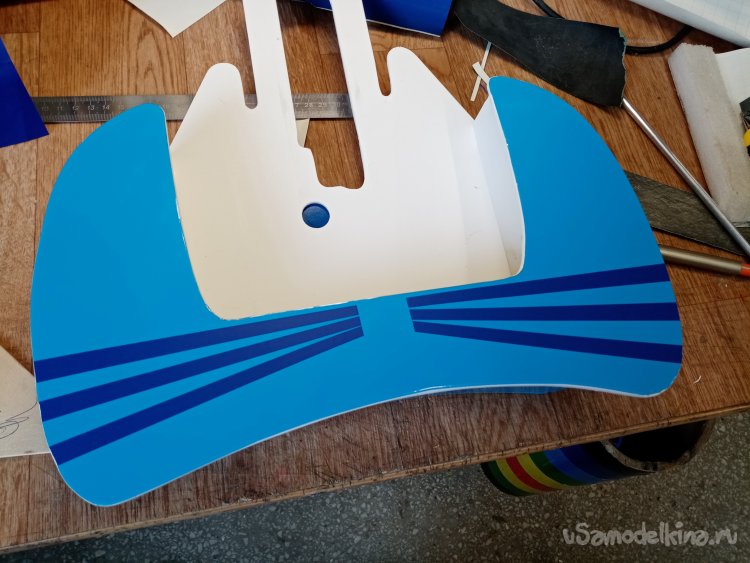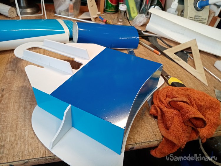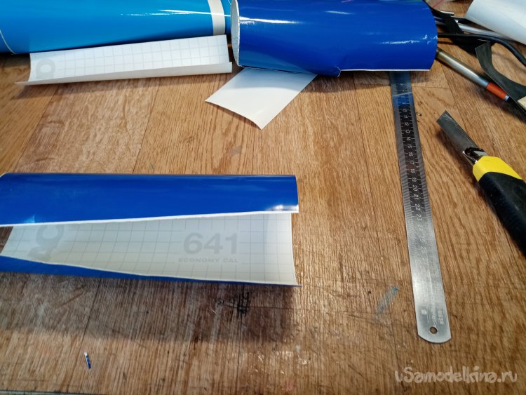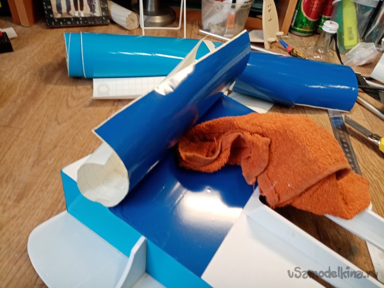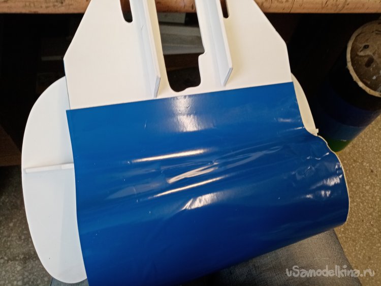 Внешнюю поверхность изделия решено оклеить рекламной пленкой. пластик белый и легко марается в процессе эксплуатации. В моделке есть довольно большая коробочка с обрезками пленки. В свое время подарили ребята из рекламного агентства.