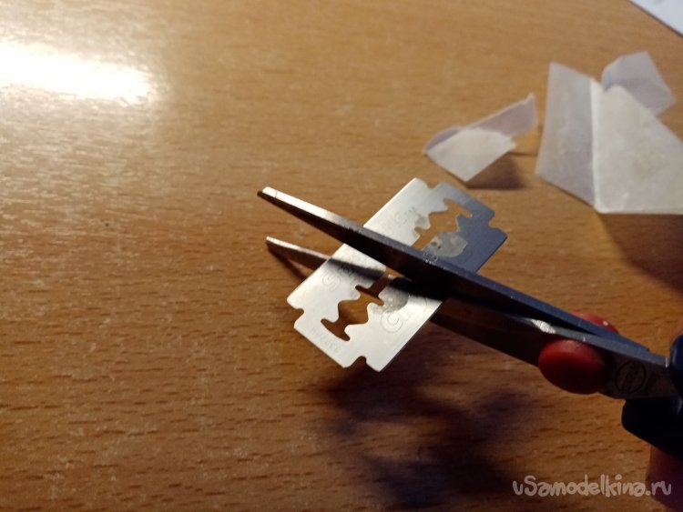 Пленку можно резать лезвием для бритья. Оно легко режется обычными ножницами на нужные кусочки. По мере затупления кончика. Можно просто отрезать его.