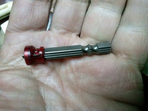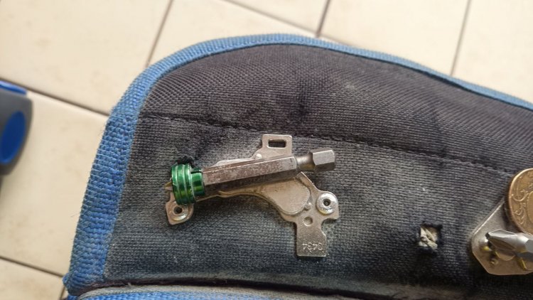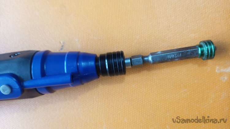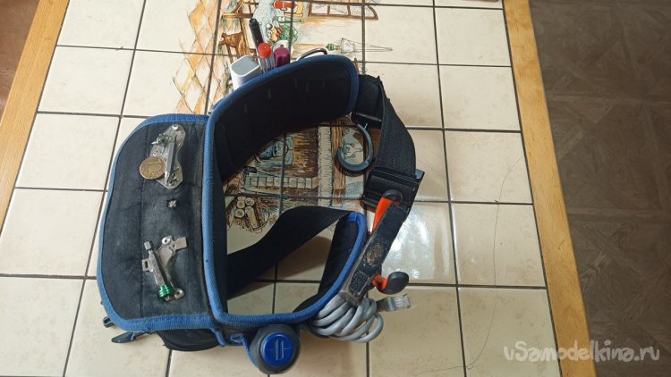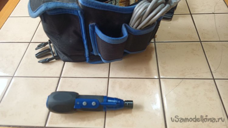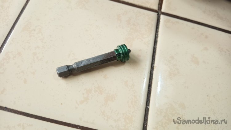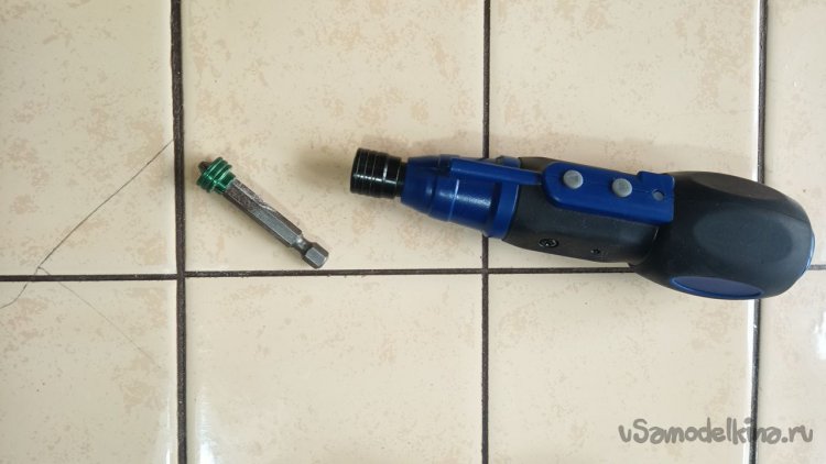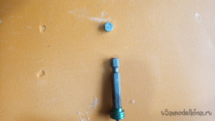 Специфика моей работы заключается в том, что хорошо бы весь инструмент иметь всегда под рукой, а не где-то в сумке или в автомобиле. Шуруповёрты вещь тяжёлая, за пояс их не заткнёшь, поэтому пришлось экспериментировать несколько лет в размерах и типах этих устройств. Лишним ничего не будет, праздников много, поэтому моя семья за несколько лет надарила мне их в большом количестве. Но мобильность где-нибудь под потолком на стремянке (то есть возможность достать прямо там нужный инструмент, не слезая вниз) заставила задуматься о приобретении малогабаритного аккумуляторного устройства для закручивания-выкручивания саморезов. Много было перелопачено вариантов в поисках оптимального инструмента, и всё равно глаза разбегались. Пришлось самому себе выставить несколько условий. Главное: оно должно вмещаться в мою рабочую поясную сумку. Я её дооборудовал по максимуму под свои потребности, и в ней есть всё, что мне может понадобиться при работе, есть даже молоток, специально укороченный и с тонкой ручкой. На крышку этой сумки заклёпками пришпилены большие подковообразные неодимовые магниты из винчестеров, на которые можно прилепить саморезы, 10-рублёвую монету для того, чтобы её вставить в тележку в «Ленте» и кучу другого металлического добра. Итак, основным критерием выбора новой аккумуляторной отвёртки стал размер, точнее, максимальный диаметр, 4 см. При этом не меньше и не больше, чтобы она не проваливалась в оставшееся гнездо моей поясной сумки. Это сработало, выбор сразу значительно уменьшился до одного варианта, который и был мне подарен на 23 Февраля. Даже с цветом семья угадала, всё в синий тон. Изделие мне понравилось, и тут я где-то увидел дополнение к нему: бита с магнитом на конце, да не простым, а неодимовым. Посмотрев видео, как это работает, я понял, что вещь вообще необходимая, так как даёт возможность заранее насадить саморез на биту и одной рукой присверлить, например, кабель-канал под потолком. Поработав некоторое время, я пришёл к мысли, что это очень удобно, но не хватает маленькой детали, а именно магнита внутри биты, чтобы она не выпадала из инструмента при наклоне вниз. Спросил жену. Она сказала, что именно в этой отвёртке эта функция реализована. Я продемонстрировал, что нету этого, и при наклоне бита выпадает. Было принято решение этот вопрос решить. Первое, что пришло в голову, это использовать неодимовый магнит из моих запасов.