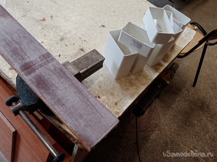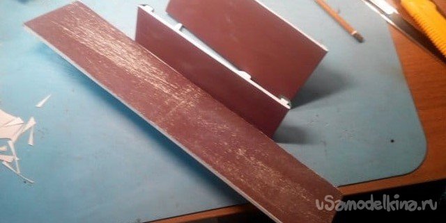 Пилка по дереву хорошо справилась с пластиком. Но небольшие заусенцы остались. Нужно шлифануть края. Буду использовать самодельные утюжки, со шкуркой, сделанные из отрезков мебельного щита в 16 мм.