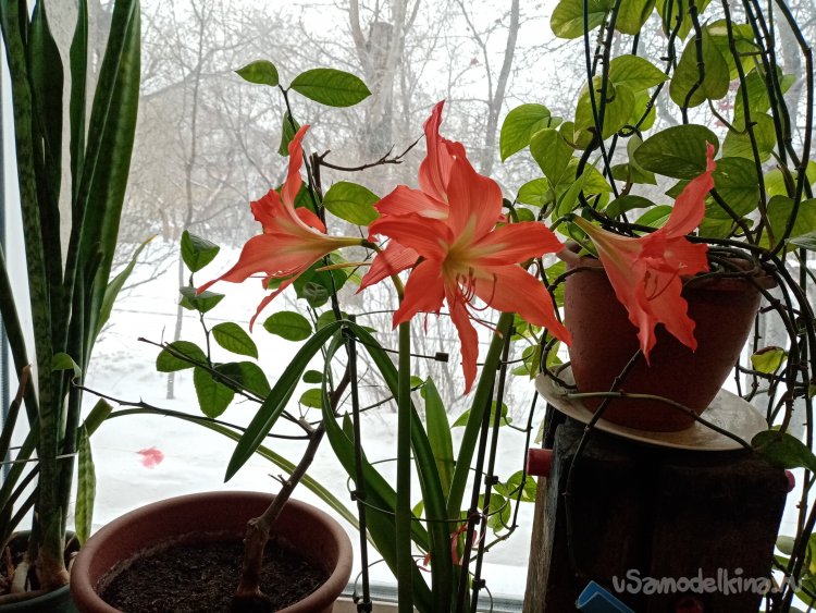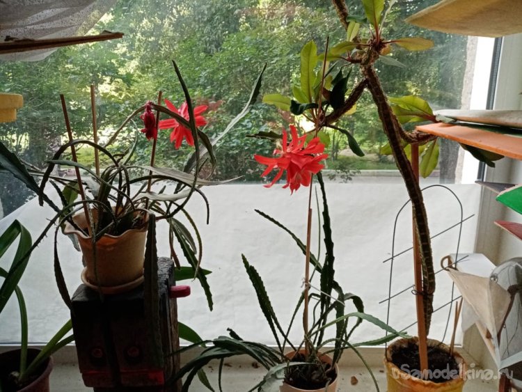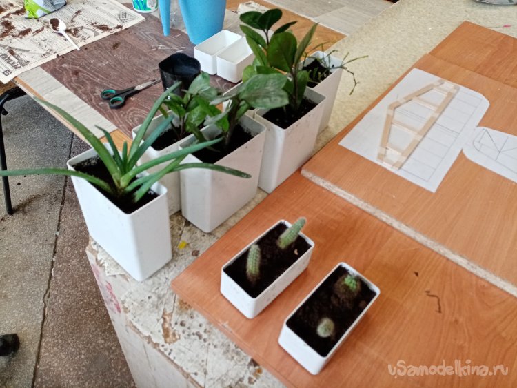 У нас в моделке много цветов. Они отчаянно выживают в постоянном стрессе. В процессе изготовления моделей все сильно грохочет, скрежещет и шумит. Регулярные выбросы пыли от резки реек на циркулярке и запах краски не смотря на хорошую вентиляцию и пылесосы , тоже не добавляет хорошей жизни. В такой атмосфере наши героические растения цветут. Причем зимой и летом.
