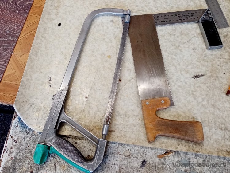 Приготовил инструмент для распиливания. Ножовку по металлу, ножовку по дереву с мелким зубом. Электролобзик, вставил пилу с мелким зубом. Болгарку. Буду пробовать пилить и желательно ровно и чисто.
