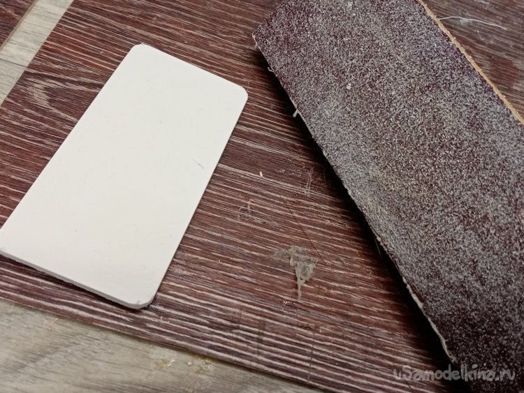 Аккуратно стачиваю уголки утюжком со шкуркой.