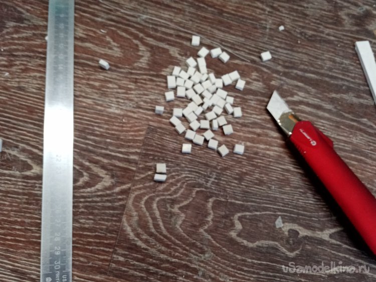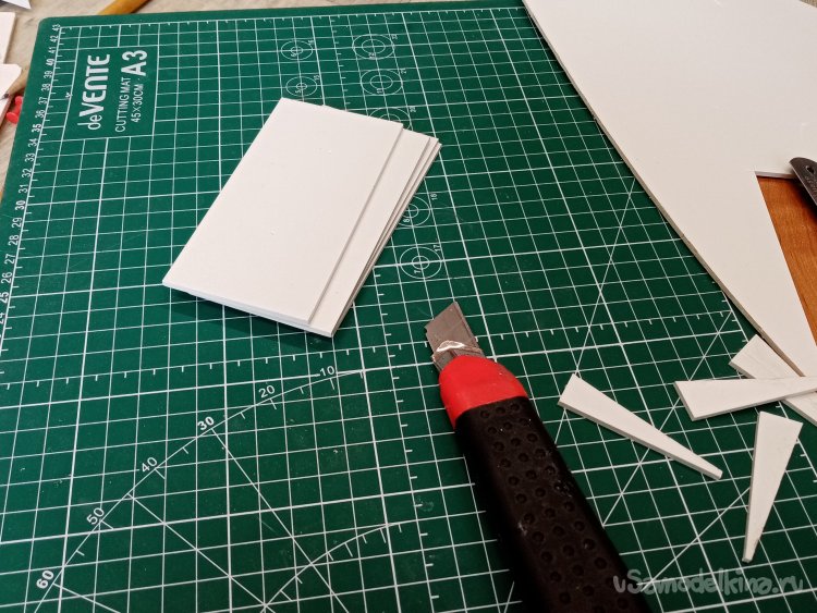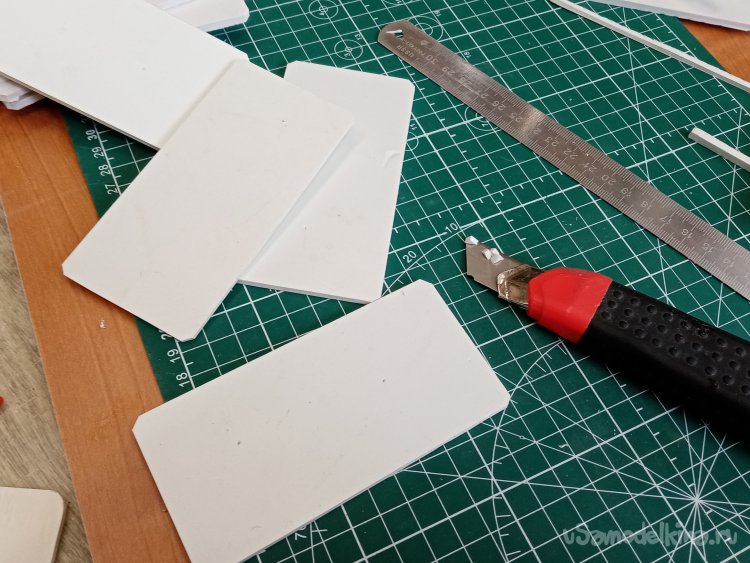По металлической линейке обрезаю заготовку простым канцелярским ножом с выдвижным лезвием.