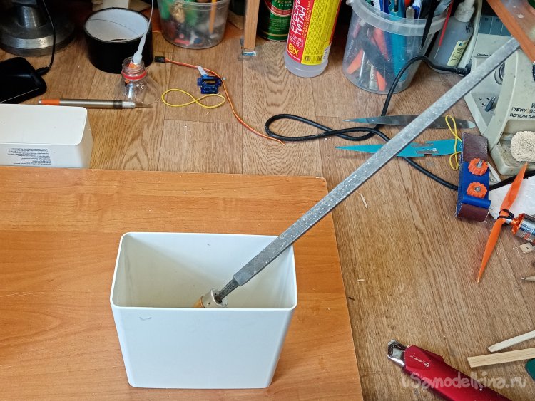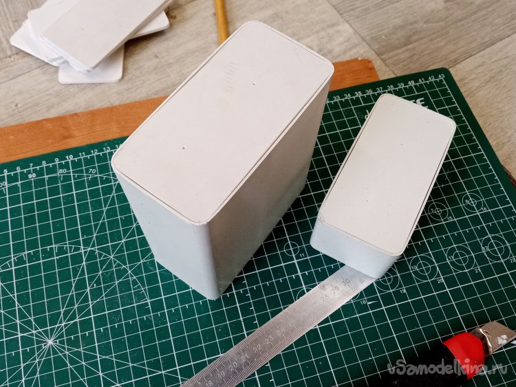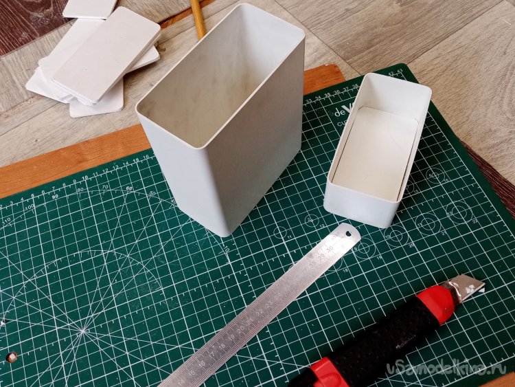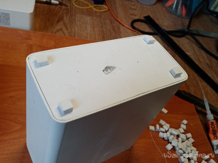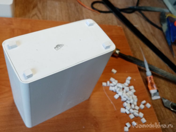 Ножки просто накромсал из остатков пластика. Под днищем они будут совершенно не видны.