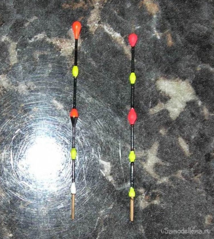 Результат на фото. Заодно можно сравнить старый и новый варианты (на верхнем фото). Новый вроде бы тяжелее (порядка 0,02 гр), но на работу поплавка такая незначительная разница заметного влияния не оказывает, зато точно проще в изготовлении.