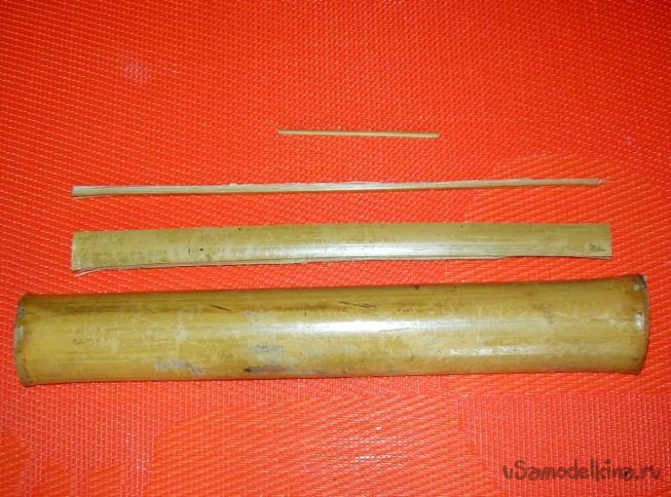 Стержень для антенны делаю из бамбука (можно и угольный стержень использовать), расщепляя острым ножом отрезок комля от древней удочки. Делаю сразу несколько заготовок немного разной толщины, а после обработки выбираю наиболее подходящий по диаметру к конкретному поплавку. Обрабатываю сначала тем же ножом, потом довожу наждачкой. Потом отрезаю нужную длину – для 1 гр поплавка 6-7 см, для более тяжелых 8-10 см (более 10 см только у одноточечников).