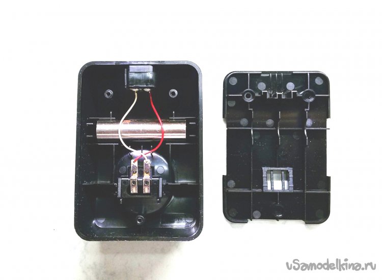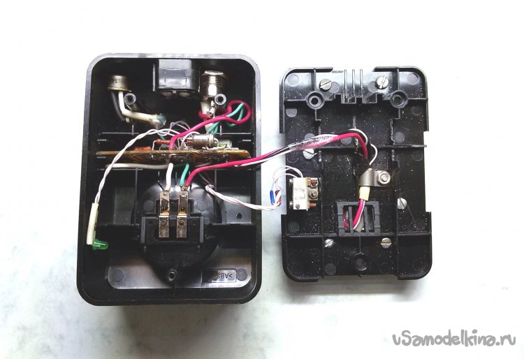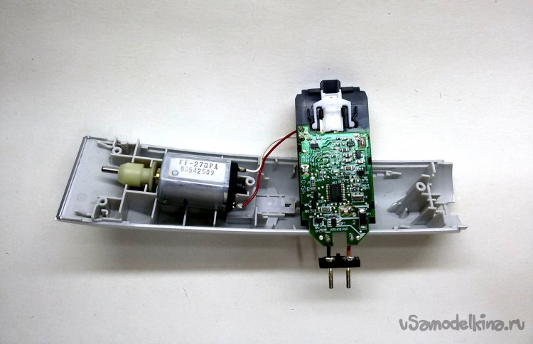 На нижней стороне пластмассового ложемента с аккумуляторами, установлен выключатель питания и плата с электроникой управления на базе специального микроконтроллера. Его данных в интернете не обнаружил.