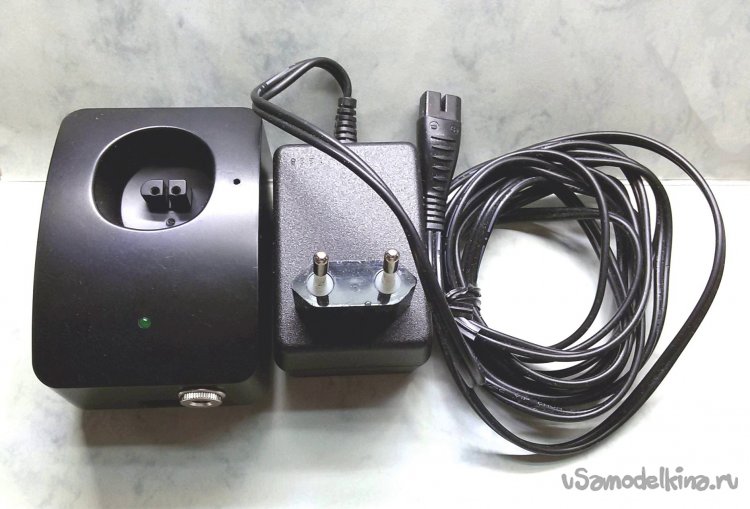 Машинка для стрижки волос штатно заряжается в подставке оборудованной скользящими контактами для быстрой установки и снятия машинки. Подставка подключается к сети с помощью адаптера 230 / 4,2В. Зарядный ток от адаптера в пределах одного ампера.