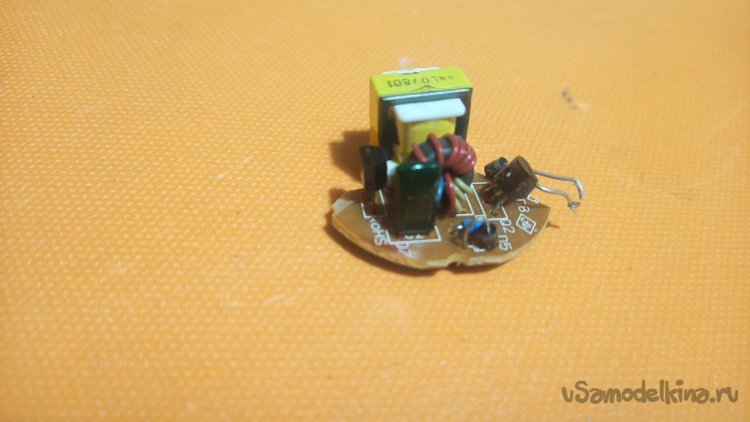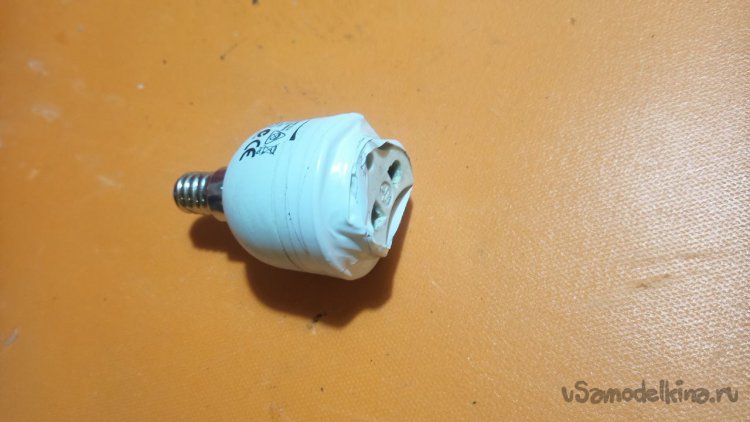 Тем более лампочка сгорела и терять мне нечего. В данном случае, имея предыдущий опыт, это было сделано на коленке за 5 минут. Главная проблема – пайка, без неё сложно безопасно соединить короткие проводочки. Зато в этот раз из лампы удалось добыть много полезных радиокомпонентов, которые как раз собирался купить, чтобы завезти мотор-колёса без контроллера.