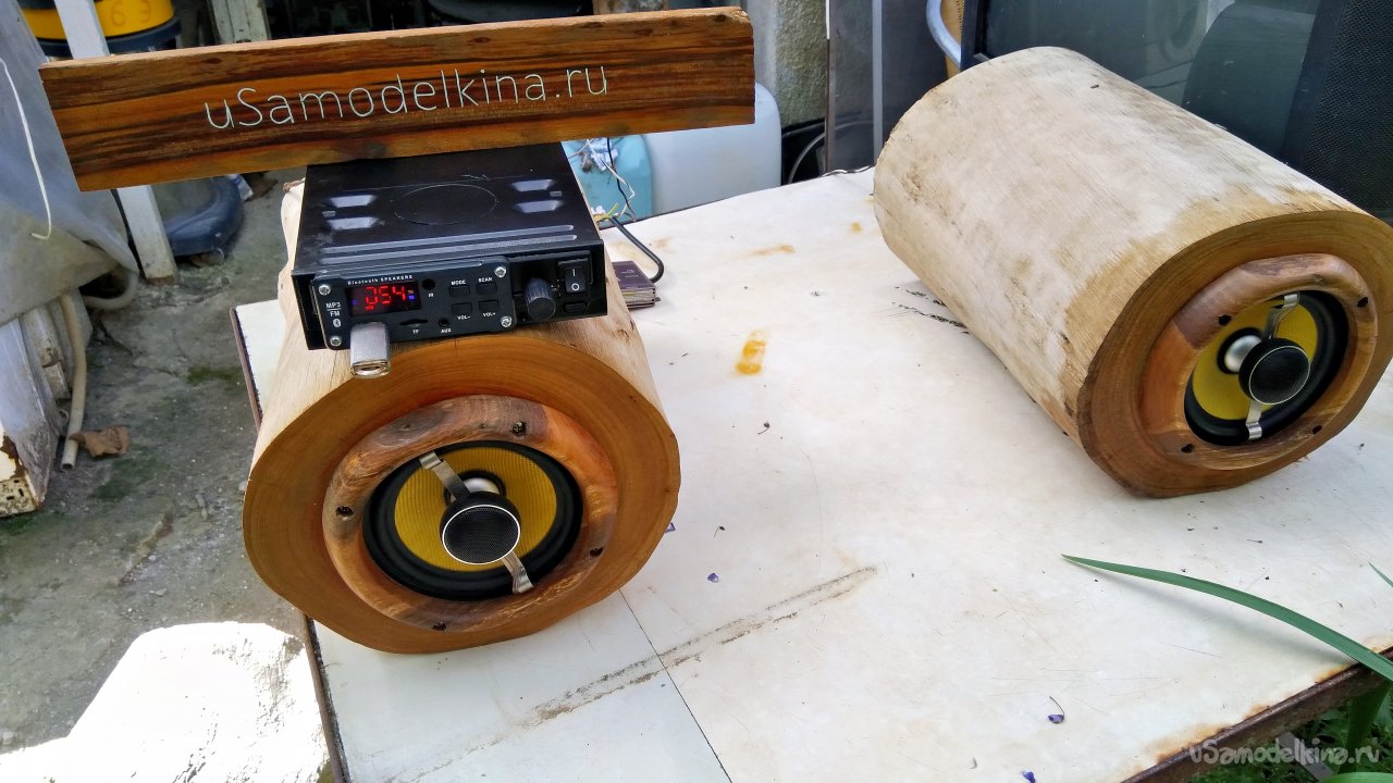 В общем собрал, усилитель 2 по 50 ватт, преобразователь напряжения со стабилизацией и защитой, и источник сигнала. Машина у него «Буханка», колоночки у него от музыкального центра, но они шестиомные и звучат невыразительно, поэтому подключил самодельные колонки из эвкалиптовых чурок, я их описывал ранее, у меня по ним весь процесс изготовления подробно расписан. Вот эти колоночки вполне прилично играют. Думаю праздник удастся ))