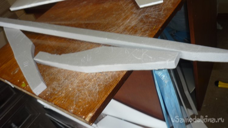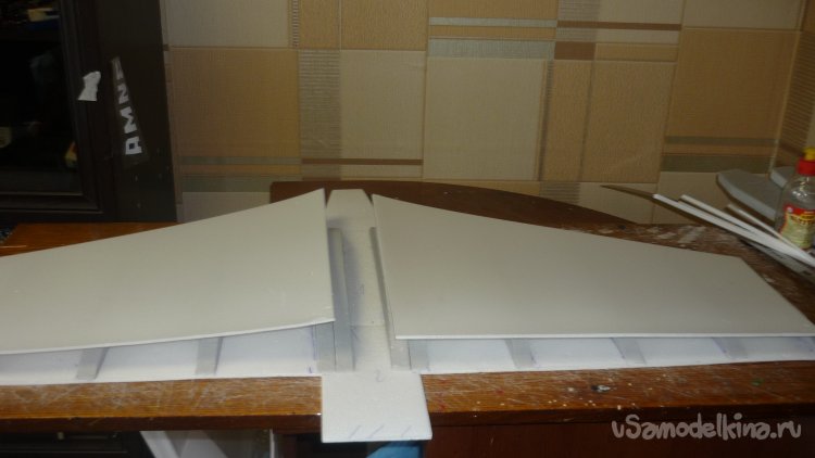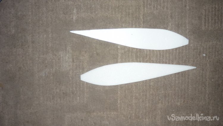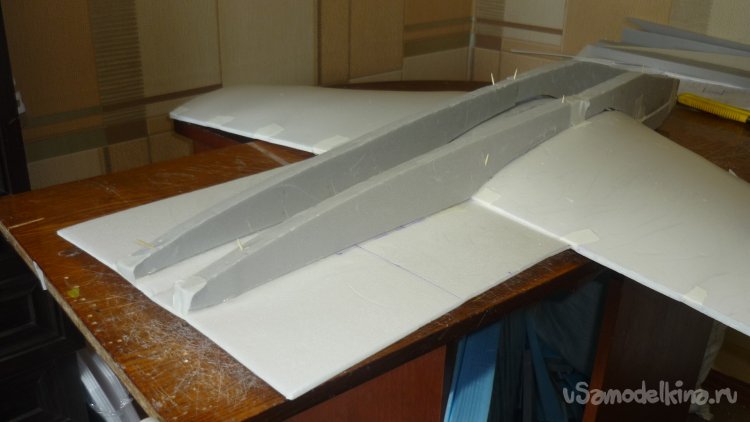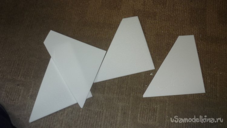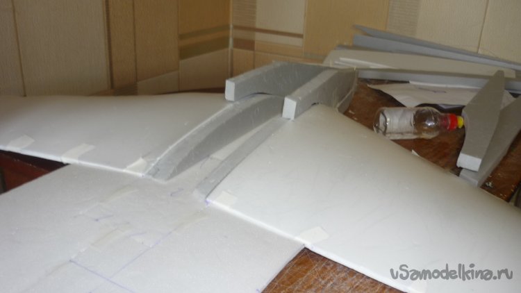 Пока сохнет клей, вырезал из утеплителя боковые стенки фюзеляжа.