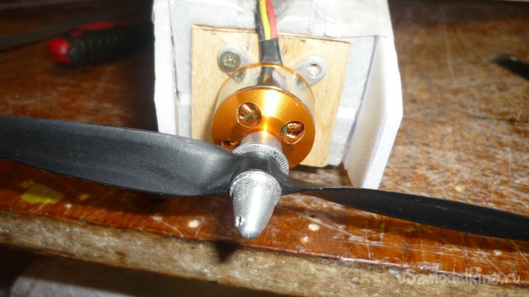 Вырезаю из 3 мм. фанеры кусочек и приклеиваю в носовой части фюзеляжа для крепления мотора.