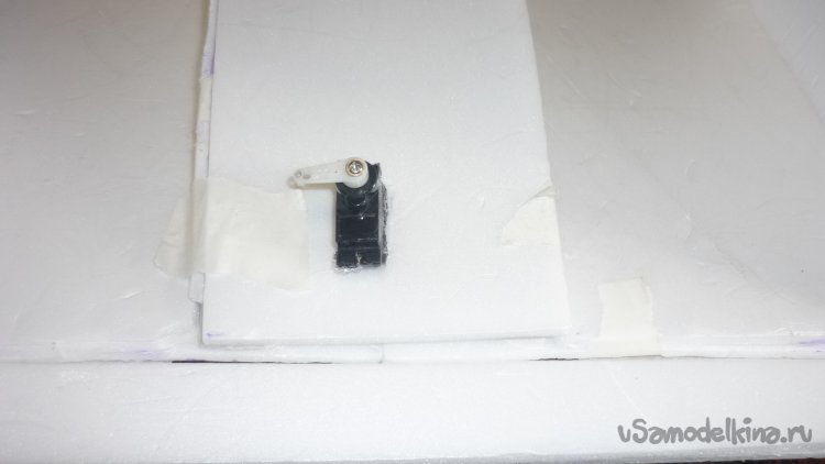 Размечаю место установки сервомашинки для руля высоты и монтирую.