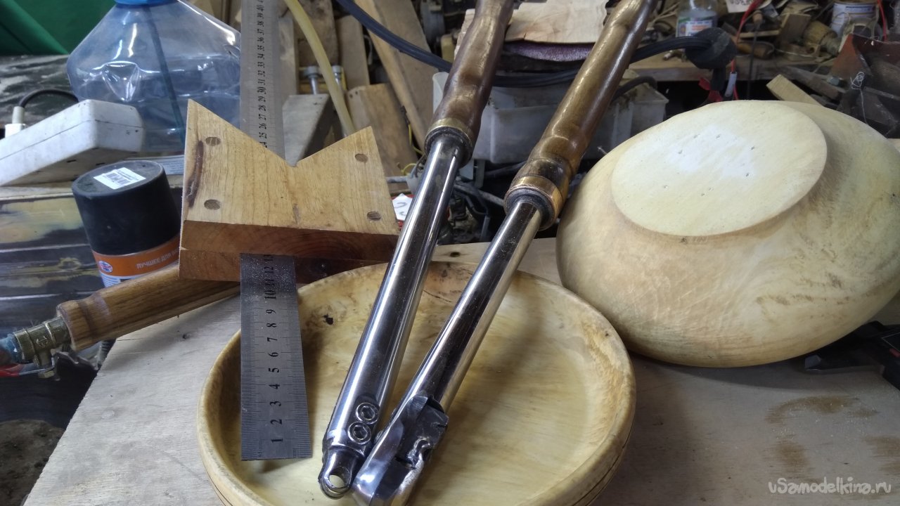 Пара резцов безопасной конструкции. Для точения дерева на токарном станке. Они длинной более полуметра, это удобно для работы, не стоит пользоваться резцами меньшей длинны.
