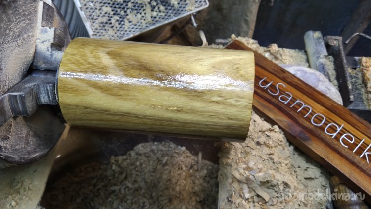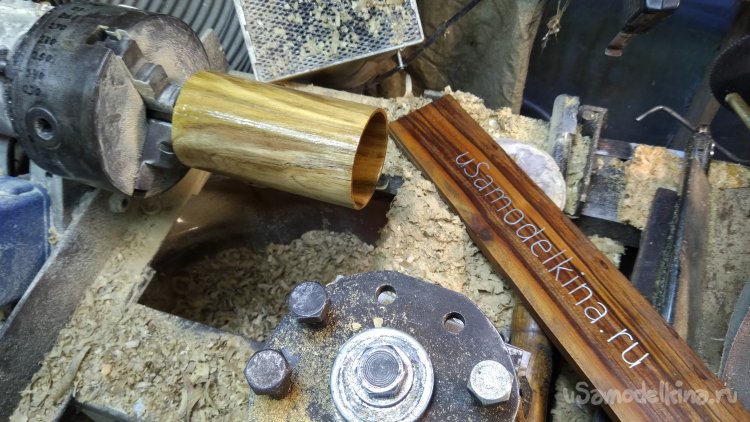 Резцом для чистовой обработки зацепил саморез оказавшийся внутри заготовки, резец испорчен, настроение тоже. Резец был изготовлен из внутренней обоймы подшипника, конструкция такова, что он не скоблит, а стругает, как рубанок работает. Причём есть ограничитель глубины врезания и соответственно регулировка толщины снимаемой стружки. Делал сам. Но сам и сломал, значит надо делать новый, я уже так привык работать хорошими и правильными резцами, что мейсели и рейеры давно лежат без дела, тем более крючок, ну и прочие скоблящие резцы тоже ))