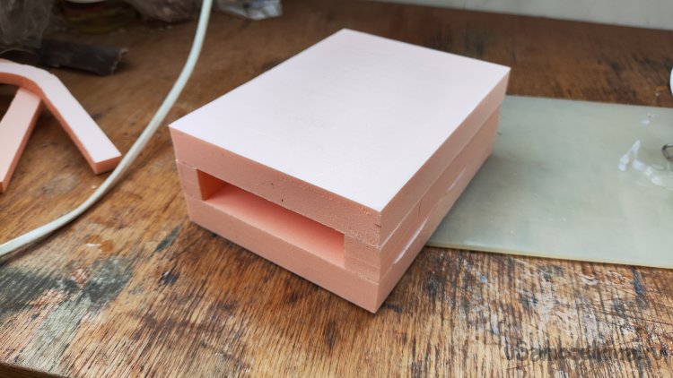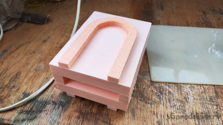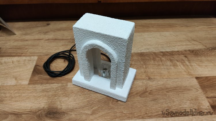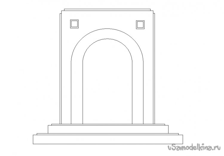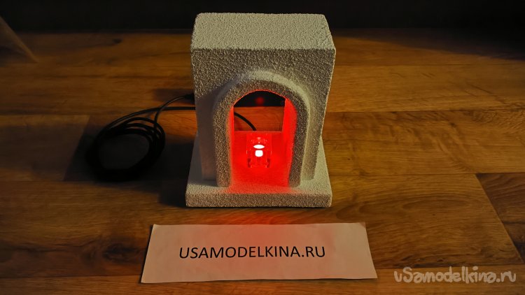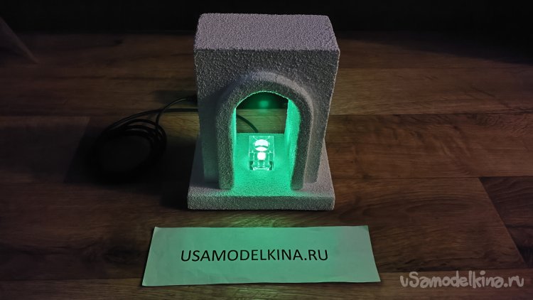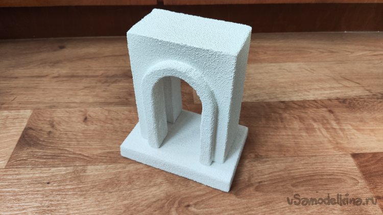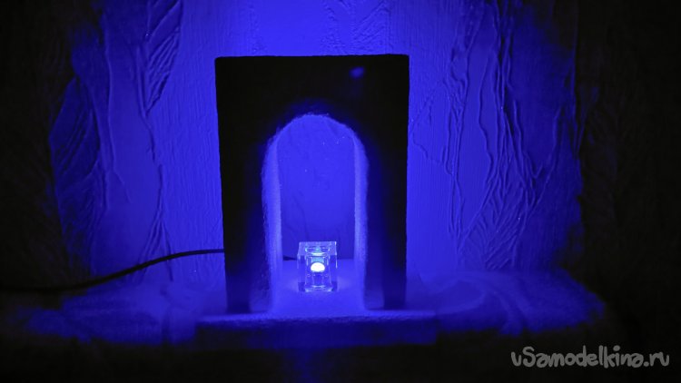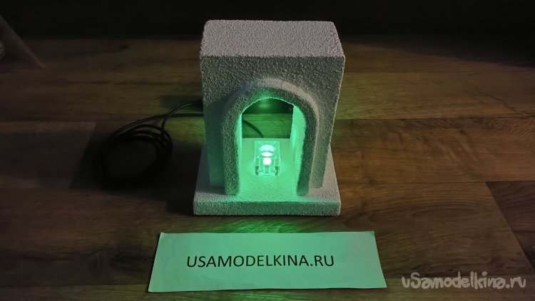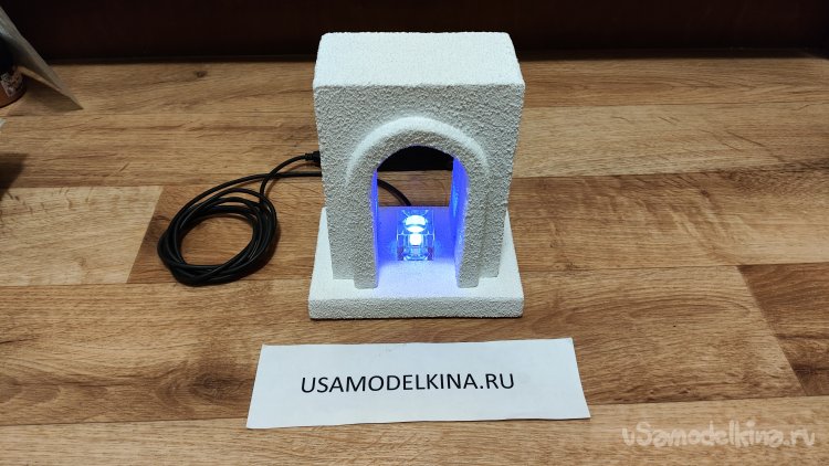 Двухъярусное основание, на котором установлено арочное сооружение. Сверху два окошка. Основной источник света планировал сделать скрытым в полости средней части с таким расчетом, чтобы сам источник было не видно. Но в процессе изготовления, источник света был размещен в ином месте. Обо всём по порядку.