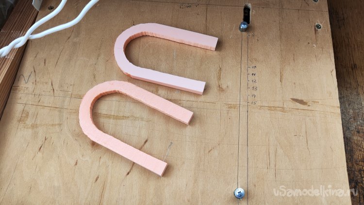 После распечатывания на бумаге эскиза, прикинул размеры светильника. На экране монитора он выглядел каким-то более вытянутым, поэтому размер заготовок увеличиваю в высоту, отрезаю заготовки, примеряю размеры для гармоничного внешнего вида. Обрезаю приспособлением арки и внутреннюю часть.