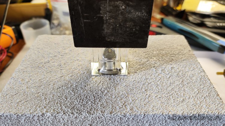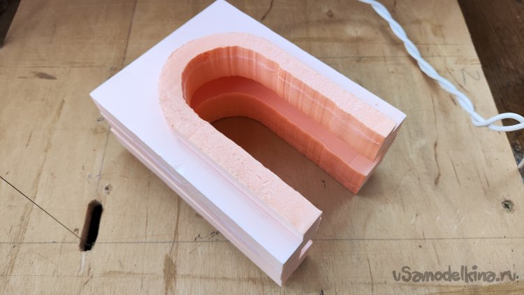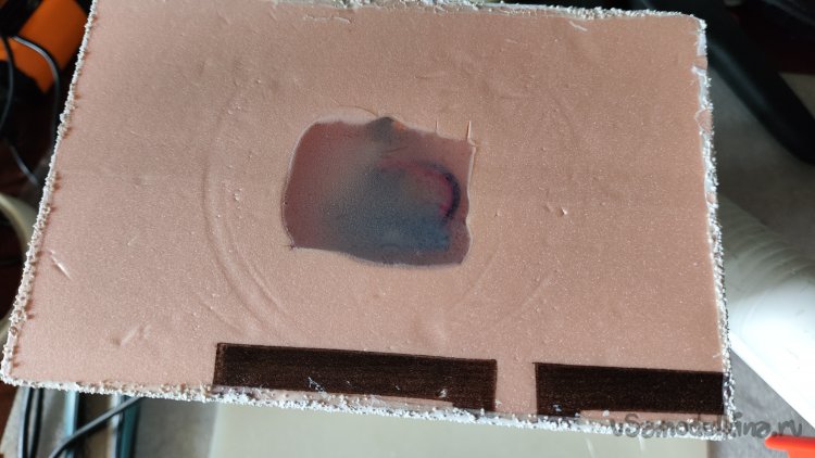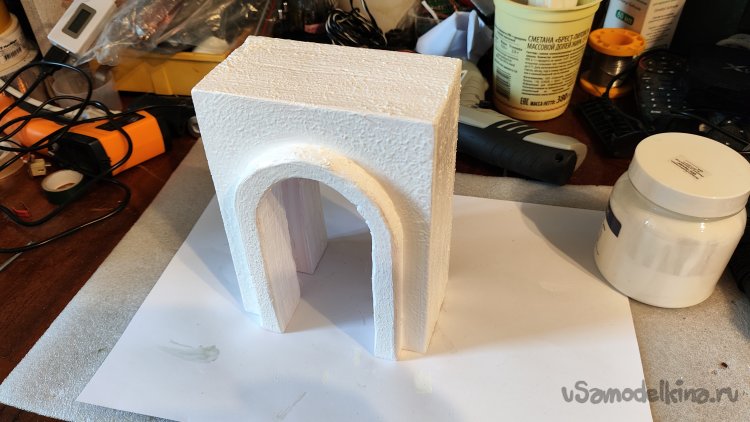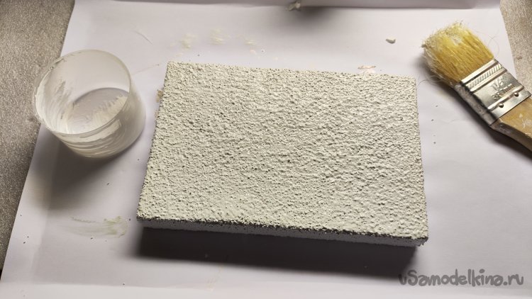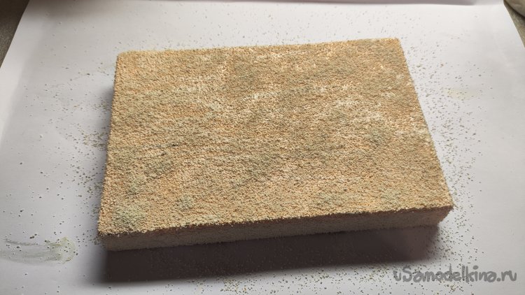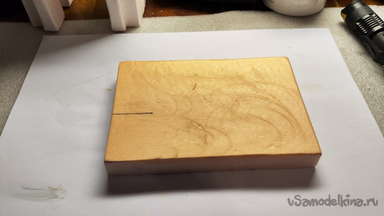Всё понравилось. Займёмся основанием. Зашкурил его, чтобы краска лучше ложилась. С гладкой поверхности акриловая краска иногда немного скатывается, пока не высохнет. Возможно при производстве пеноплэкса используют силикон для разделения изделия и формы.
