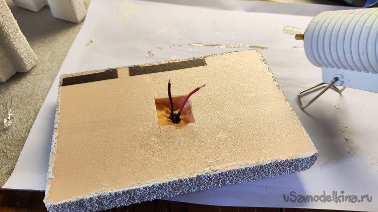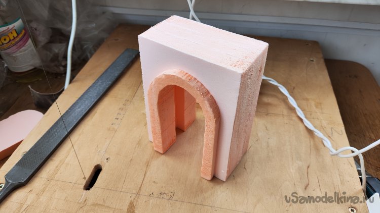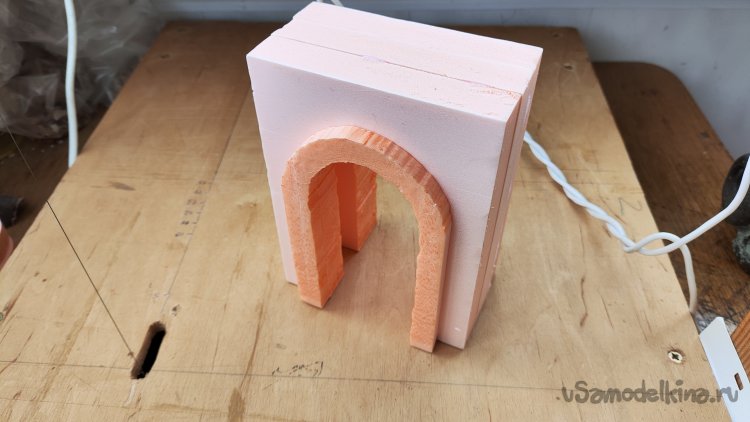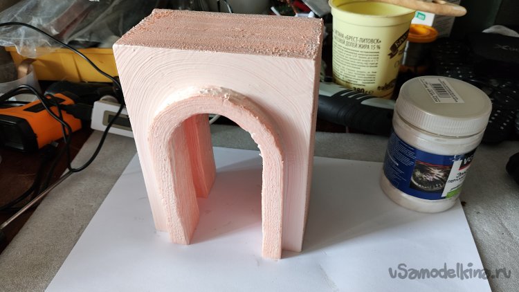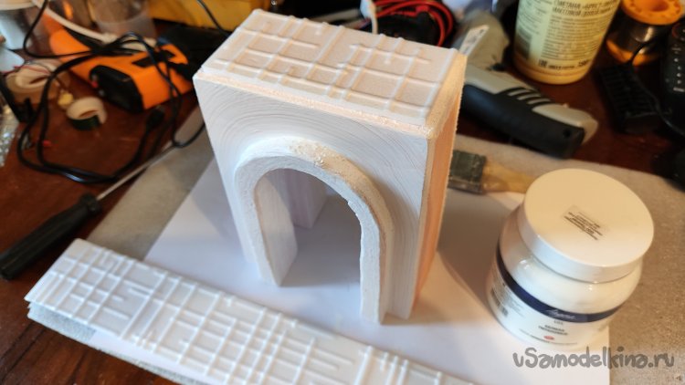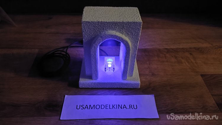 К основанию пока не приклеиваю, так как повторю, собирался устанавливать источник света внутри, в верхней части арки. Монтировать светодиоды на не приклеенной к основанию арке будет проще. Заодно проще будет спрятать провода.