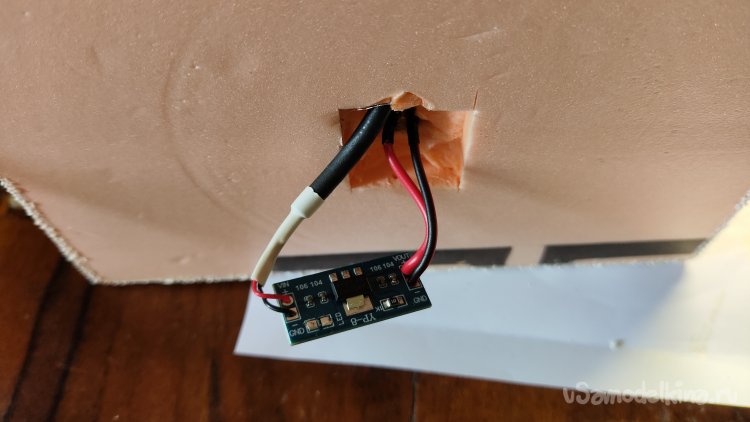 Итак, займёмся освещением. Проделываю отверстие под RGB светодиод с медленным переключением цвета, которые я использую практически во всех своих самоделках. К светодиоду припаиваю провода и изолирую термоусадкой.