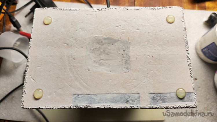 Закрашиваю низ основания титановыми белилами. После высыхания приклеиваю силиконовые ножки.