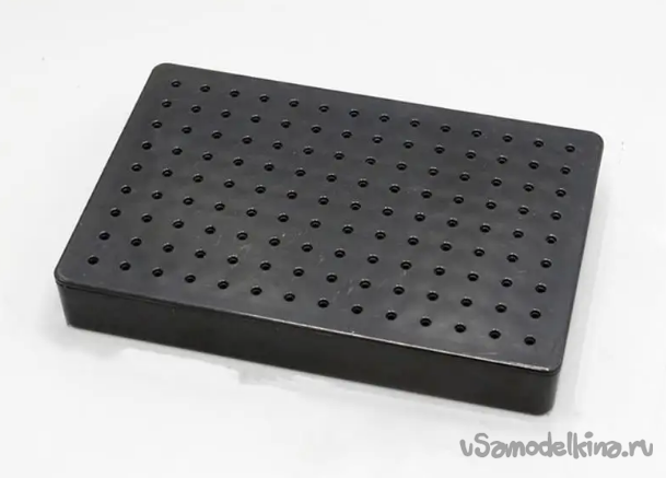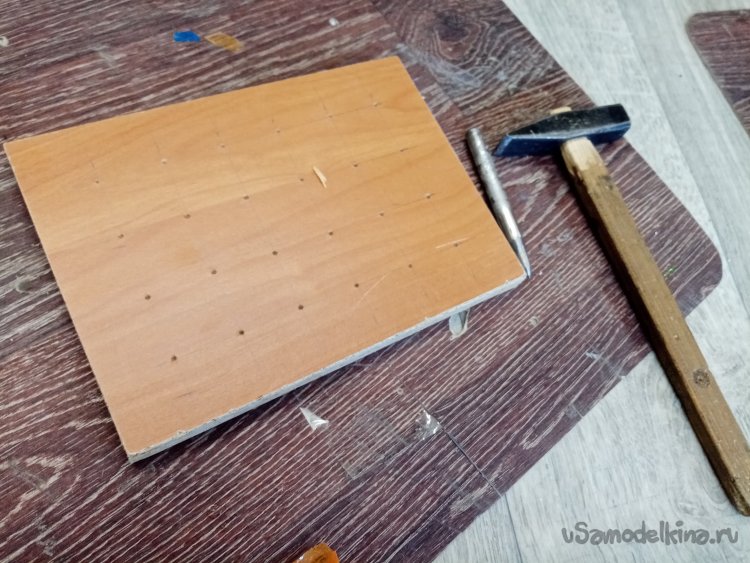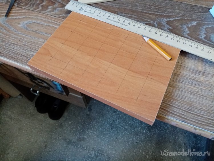 Начинаю разметку основания. При помощи деревянной линейки крутой фирмы «Мозжга» и карандаша твердостью 8В. Отверстия расположил на расстоянии в 30 мм. И надо же какое совпадение, основание четко подошло такую разметку. Повезло, однако.