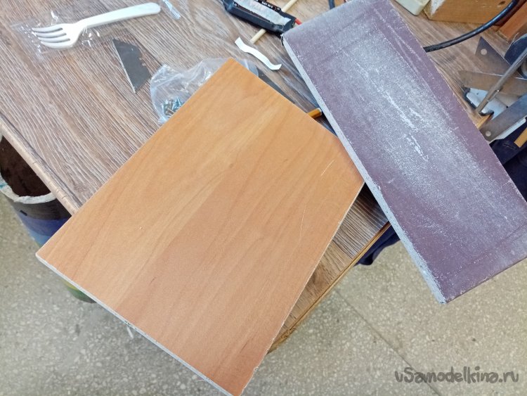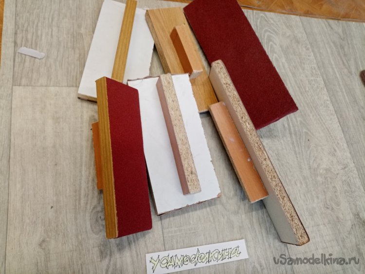В качестве основания выбираю кусочек мебельного щита. Толщиной в 16 миллиметров. Честно говоря пилить как-то не хочется. Начинаю поиски готового кусочка.