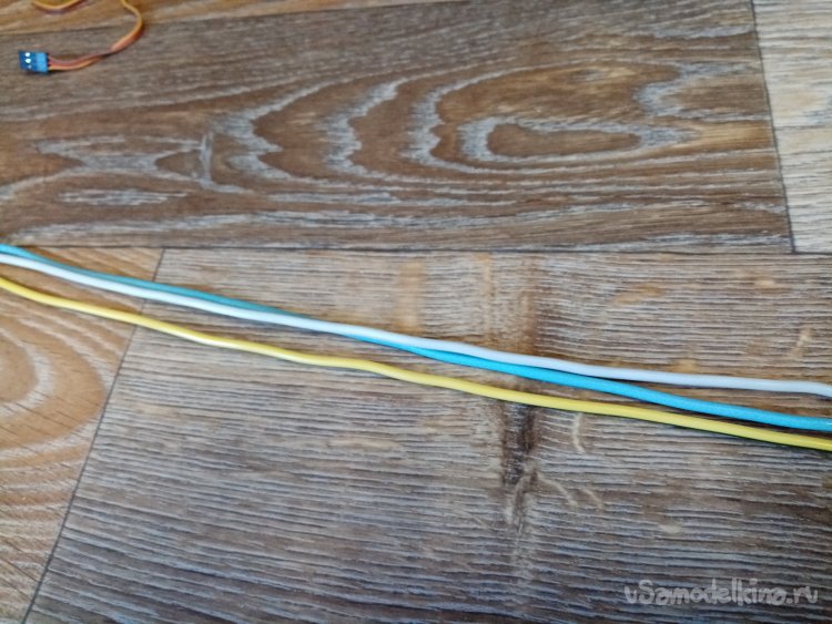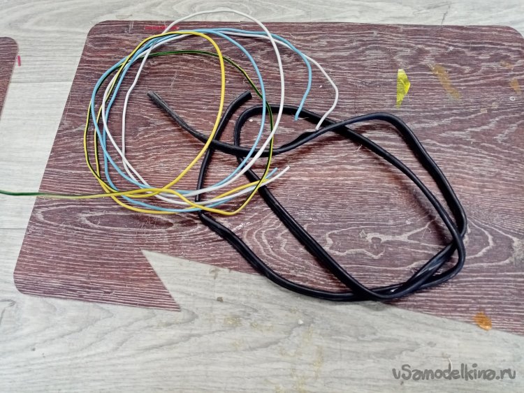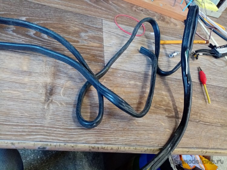 Аккуратно разрезаю внешнюю оболочку, стягивающую внутренние три провода. Извлекаю кучку провода.