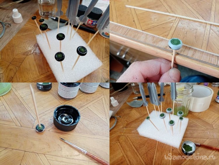 И что теперь? Нужно начинать делать. В данном наборе достаточно большой объем маленьких деталей, которые желательно окрасить до установки и сборки. До этого проекта, закреплял мелкие детали на зубочистках или приклеивал на проволочки при помощи двухстороннего скотча.