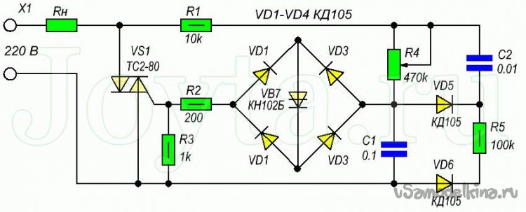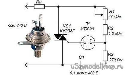 В этой схеме в качестве порогового элемента использован тиратрон МТХ-90. Весьма распространенная в прошлом, до появления DB-3, схема, вот эти регуляторы на паяльниках собраны именно по ней.