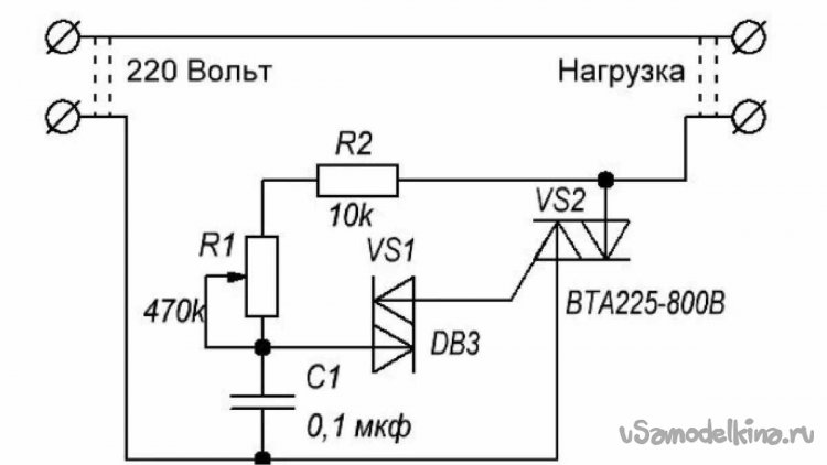 Что здесь не понравилось. Напряжение включения тиратрона при таком подключении - 60 и более вольт. Чтобы рассказать, почему это плохо при регулировке малых напряжений, надо рисовать графики, синусоиду и т.д., так что лучше поверить на слово. Хотя в остальном все нормально работает. Собираем схему на, чтоб его, DB-3 и испытываем также в обоих вариантах. Цепочка подавления помех – дань моде.