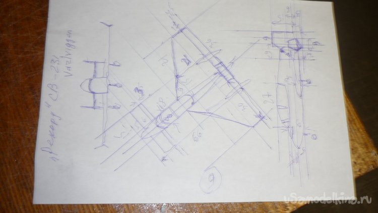 На основе имеющихся фотографий чертежей самолёта сделал свой небольшой рабочий набросок и проставил размеры.