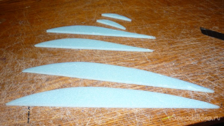 Из подложки вырезал комплект нервюр, который состоит из коневых средних и концевых нервюр.
