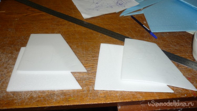 Модель делаю из подложки под ламинат голубого цвета с размерами 1000 х 500 х 5 мм.