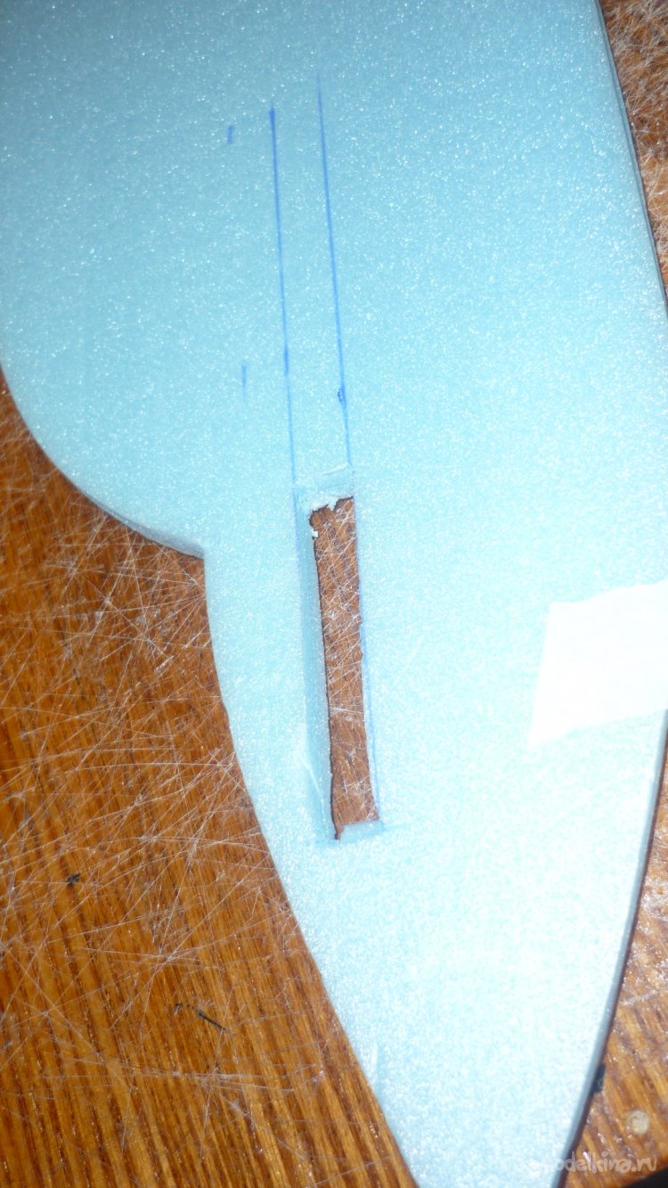 Примеряю кили вставляя из в заготовленные прорези во внешней обшивке крыла.
