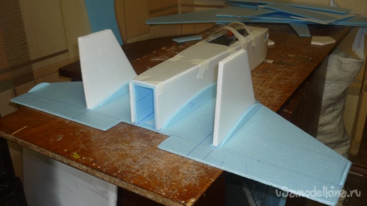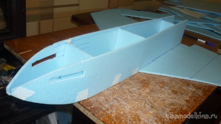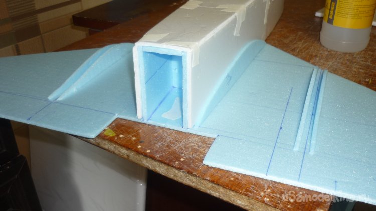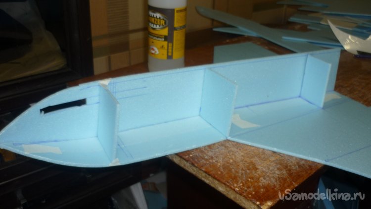 На несущую плоскость монтирую боковые стенки фюзеляжа и внутренние горизонтальные и вертикальные перегородки.