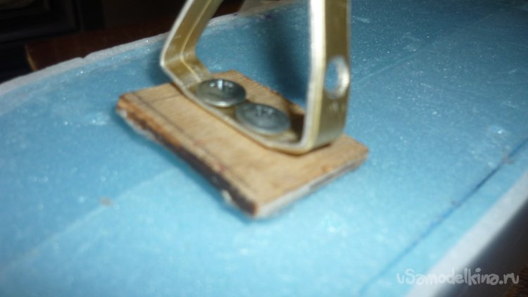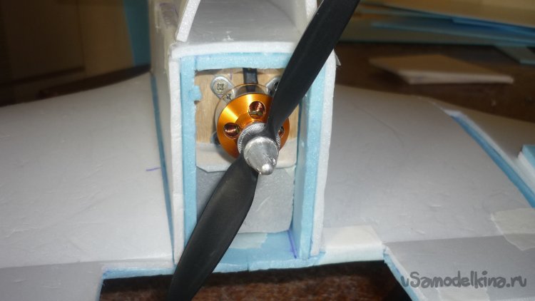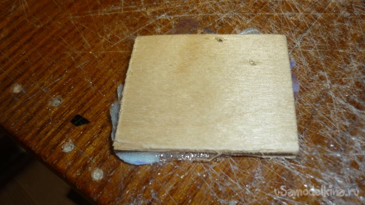 Из утеплителя вырезал кусок, на который приклеиваю кусочек 3 мм . фанеры, для установки мотора.