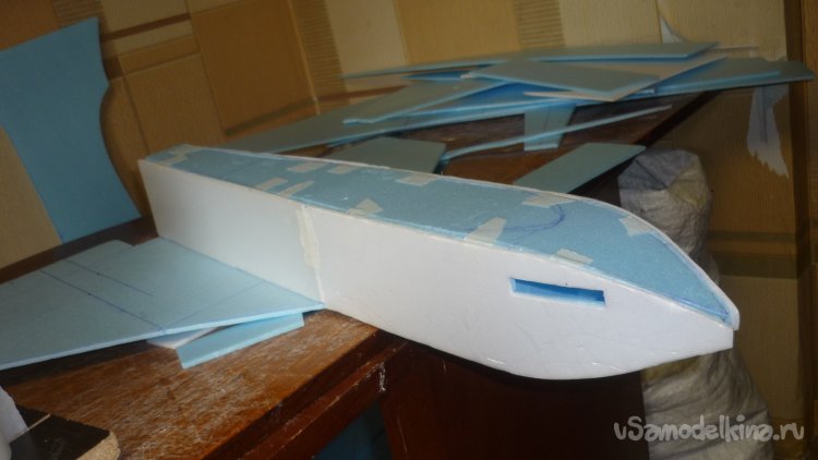 Из потолочки выкраиваю внешнюю обшивку фюзеляжа , верхнюю стенку и боковые.